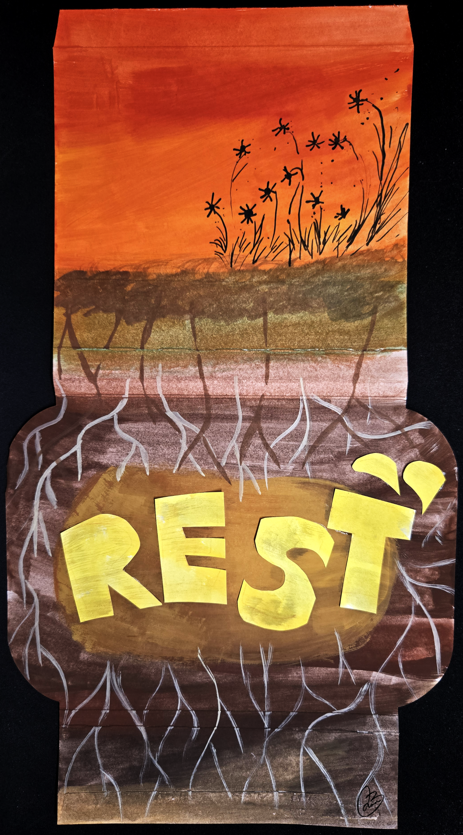 Not much to say for this one that I didn’t say for Day 07. I did a little collage for the word “rest.” I made some collage papers a while back that I haven’t figured out a use for, but the yellow one I thought would fit nicely here. I like how dark the ink […]